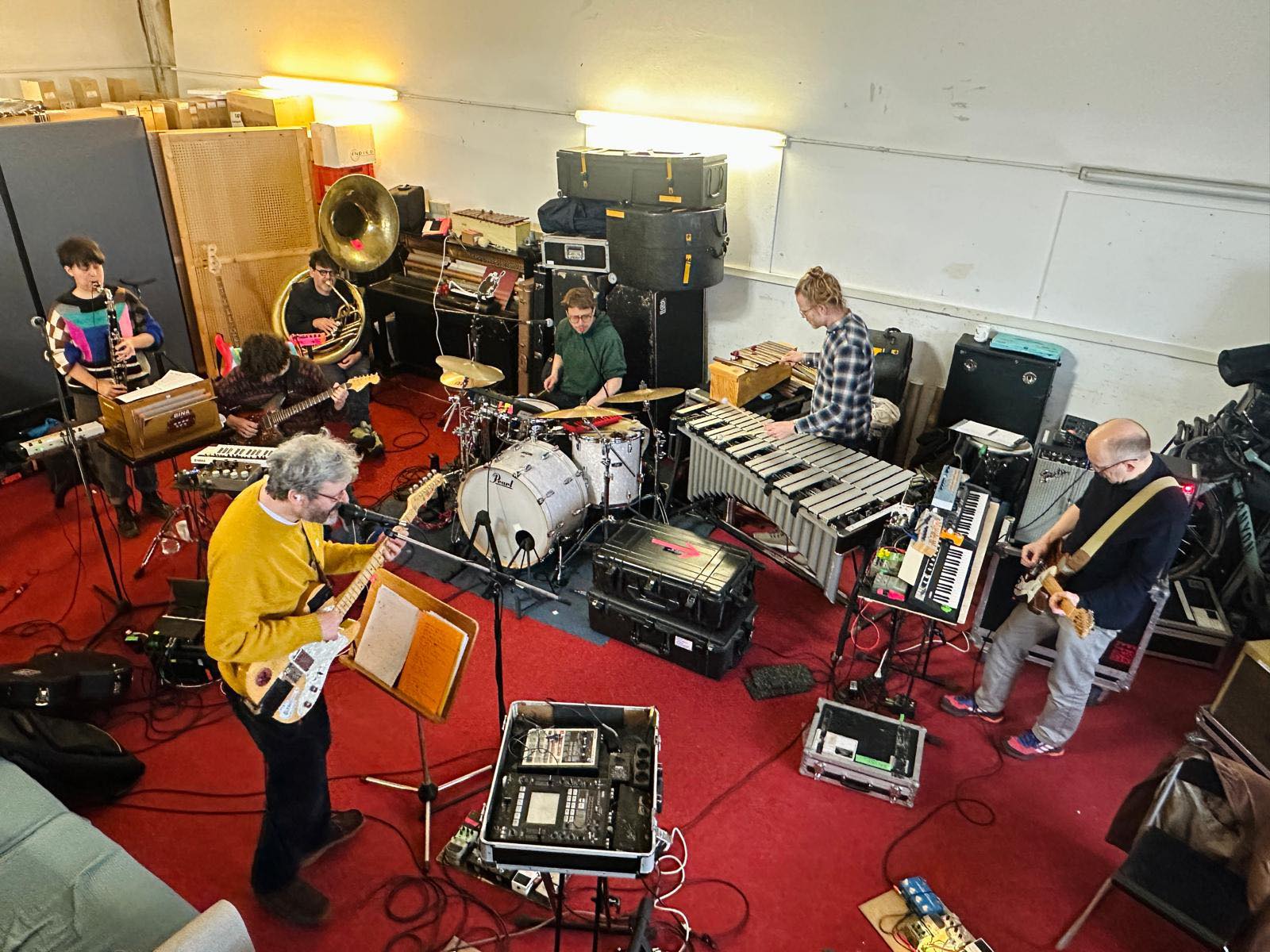 C'è sempre molta musica diversa che mi piace. Come la cantautrice americana Florist, che ho ascoltato tantissimo, oppure molta musica giapponese che ho scoperto nel tempo. Ma penso che l'esperienza più importante sia stata invitare l'artista americano e musicista, Nathaniel Russell. Lui è conosciuto soprattutto come pittore e artista visivo, ma è anche un musicista davvero bravo, e lo abbiamo invitato dopo che aveva pubblicato un disco molto bello poco prima — che consiglio davvero (ndr. Songs of). Lui raccontò che, quando aveva quei brani, ogni volta che le persone passavano da lui, chiedeva loro di unirsi alle registrazioni per suonare insieme. Questa cosa per me è stata una grande fonte di ispirazione. Così, quando è venuto, gli abbiamo proposto semplicemente di suonare le sue canzoni una sera davanti al pubblico, dal vivo, tutti insieme. Quindi hanno suonato anche Enid, Hauka, mio fratello Misha, io e Matthias. Abbiamo suonato con lui in questo modo. E credo che questa sia stata per me la più grande ispirazione per questo disco: l’esperienza di fare musica così, come avevamo già fatto anche con altre band prima, ma soprattutto questa idea di suonare semplicemente i brani insieme. Da lì è nata anche l’idea del disco: riunirsi per una settimana, provare nuovi pezzi e poi registrarli subito, senza troppo tempo di distanza.